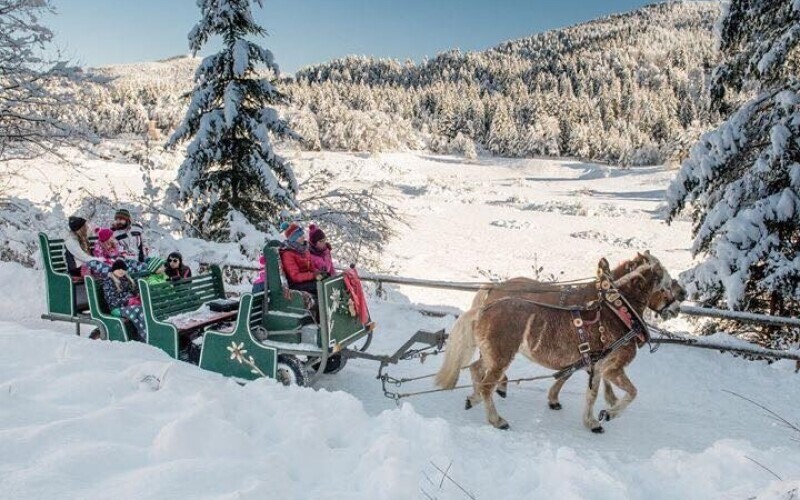 Vivi un magico viaggio in slitta trainata da cavalli tra i paesaggi innevati di Andalo e scopri i mercatini natalizi e le tradizioni alpine di Trento.