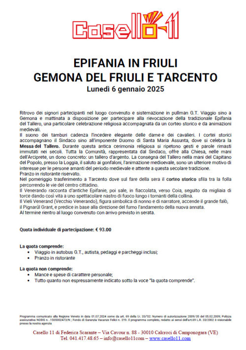 - Viaggio in autobus G.T., autista, pedaggi e parcheggi inclusi;