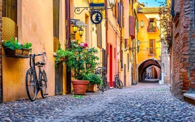All’arrivo incontro con la guida per la visita del centro storico della città di Ferrara. Si tratta di un viaggio raffinato nell’eleganza della sua architettura e delle sue opere d’arte, massima espressione del periodo medioevale e rinascimentale. Nel nucleo centrale di Piazza della Repubblica, si parte dal Castello Estense, (visita esterna) costruito nel 1385, e circondato dalle acque del fossato, che rappresenta un chiaro simbolo della potenza di questa famiglia che ha lasciato segni indelebili ovunque. Il Palazzo Comunale, unito al castello da un percorso coperto, risale al 1200 circa e fu residenza ducale degli Estensi. Il palazzo si affaccia sulla piazza della Cattedrale costruita a partire dal dodicesimo secolo, con una grandiosa facciata iniziata in stile romanico e proseguita più tardi nella parte superiore in stile gotico; una splendida sintesi di stili. La passeggiata concluderà nella zona dell’antico porto fluviale (Via delle Volte) e attraverso il vecchio Ghetto ebraico.