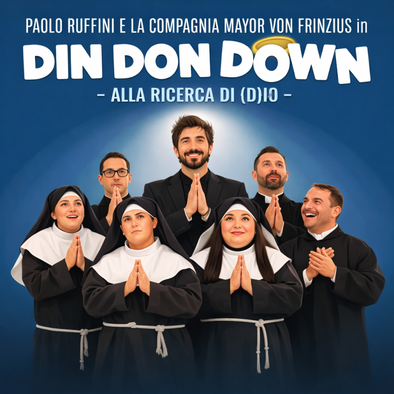 "Din Don Down" è uno spettacolo teatrale del 2025-2026 di Paolo Ruffini, con la compagnia Mayor von Frinzius, dedicato al tema del sacro e della ricerca di Dio con ironia e delicatezza