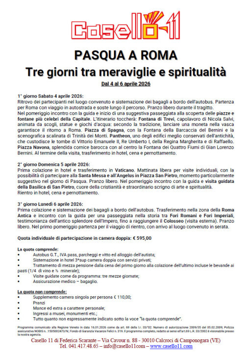 Quota individuale di partecipazione in camera doppia: € 595,00